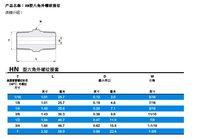 HN型六角外螺紋接套