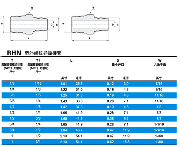 RHN型外螺紋異徑接套